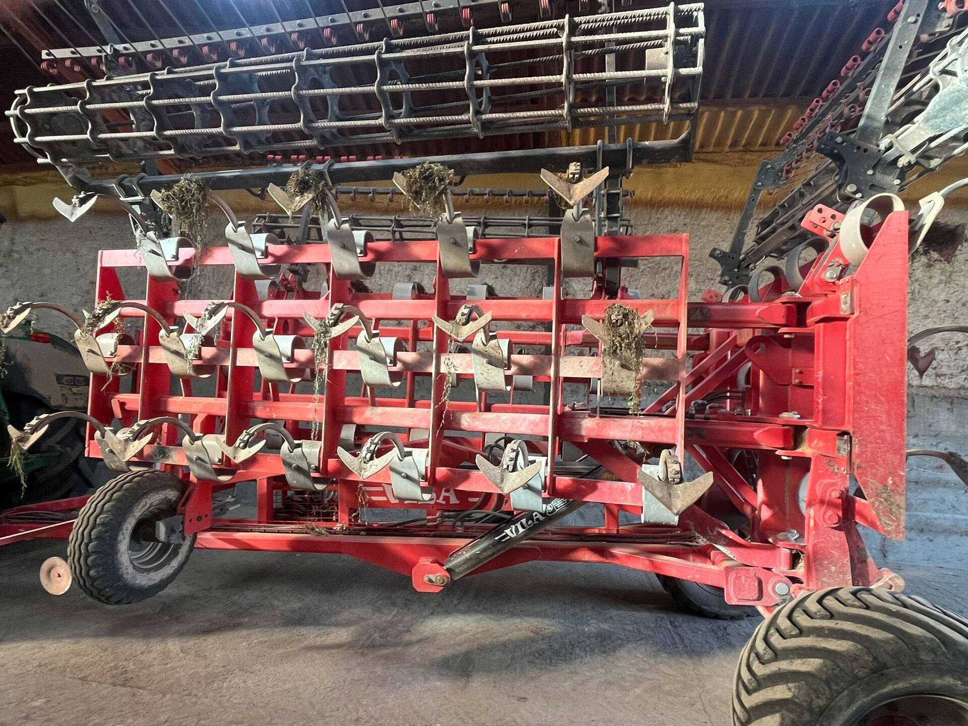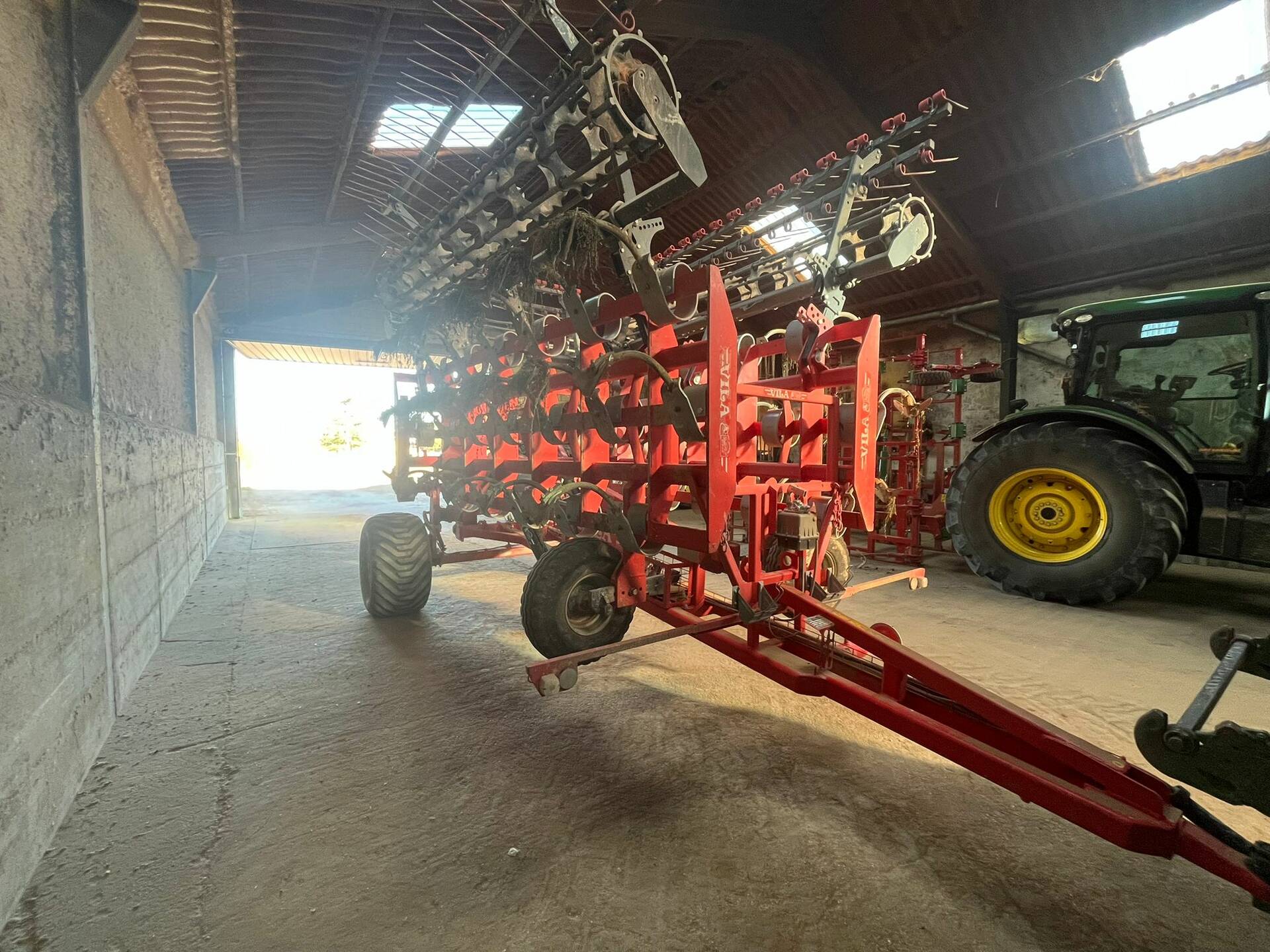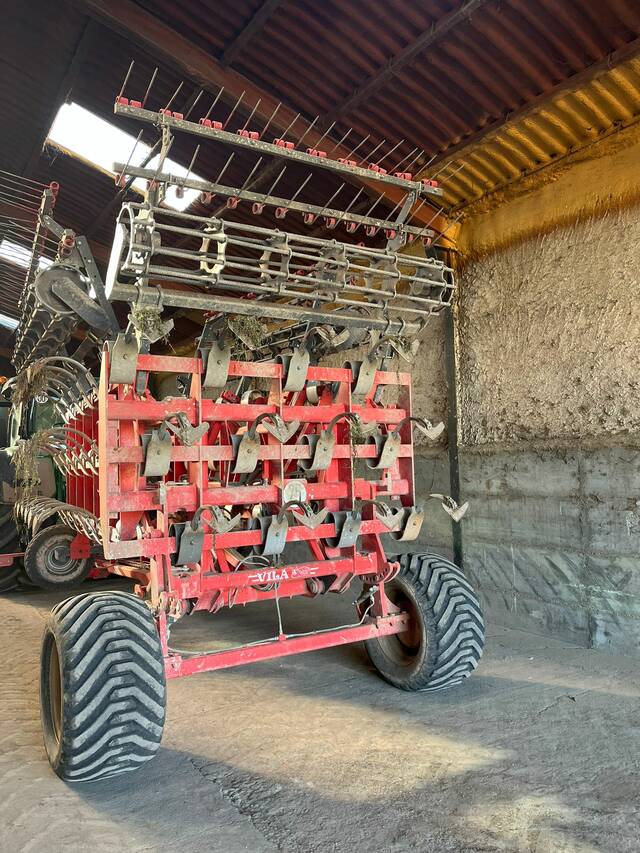 Cultivador arrossegat VILA amb 46 braços VF en 3 fileres. Corró diàm. 450 mm amb superboixes. Es ven sense el rascle. Matriculat.