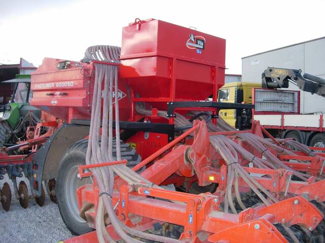 Kit para la aplicación de abono microgranulado (tolva + accesorios). Adaptables a las siguientes sembradoras: Kuhn SD Liner 3000, Kuhn SD 4000, Kuhn Fastliner 6000 SD, Kverneland Accord TS, John Deere 4 m SD.